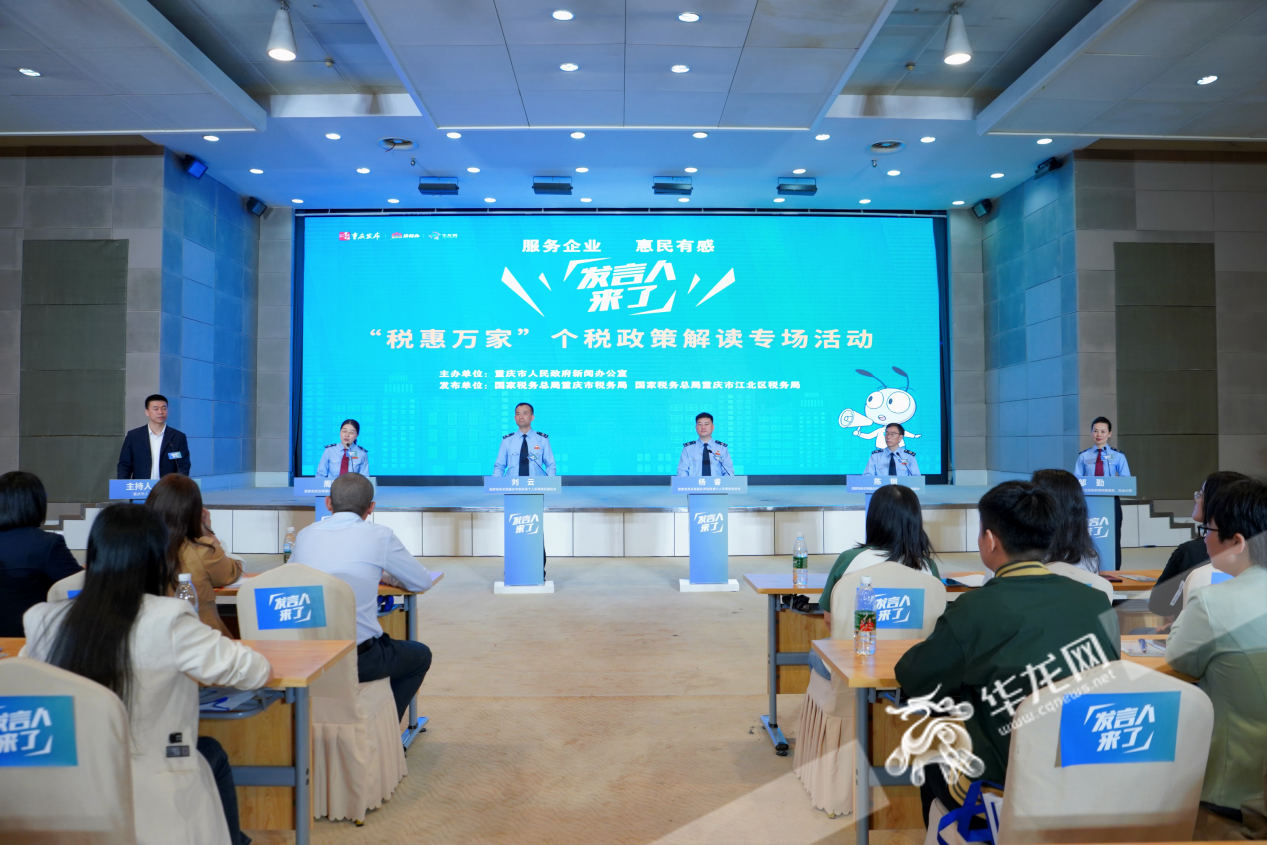 4月29日,由重庆市政府新闻办、国家税务总局重庆市税务局联合主办的“发言人来了”——“税惠万家”个税政策解读专场活动在江北区举行,来自重庆市税务局和重庆江北区税务局5位发言人,围绕个税相关政策和市民面对面交流。