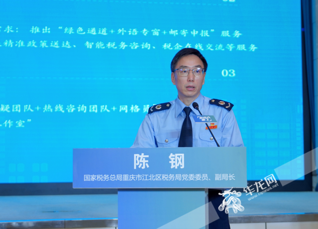 江北区税务局发言人介绍有关情况。华龙网 董静 摄