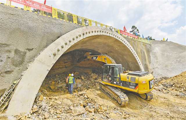 6月6日,成渝中线高铁缙云山隧道施工现场,施工人员正在加紧作业。
