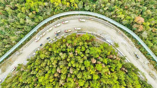 1月2日,酉阳县入城公路改造工地,工人正在忙碌施工。