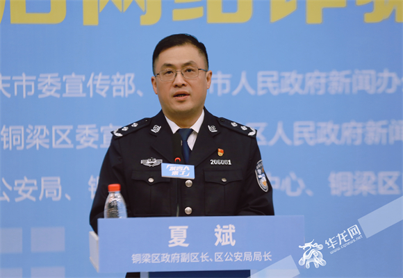 铜梁区人民政府副区长、区公安局局长夏斌作主题分享。华龙网-新重庆客户端记者 雷其霖 摄