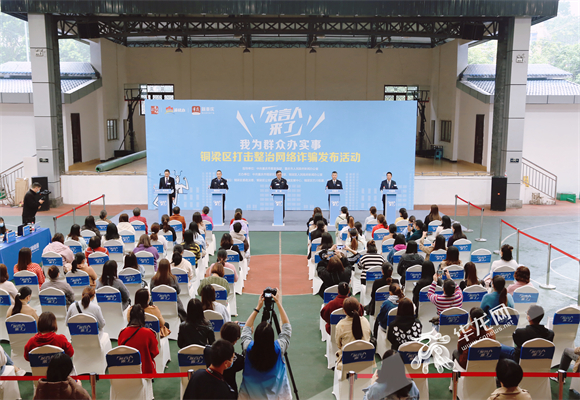 “发言人来了——我为群众办实事”铜梁区“打击整治网络诈骗”发布活动现场。华龙网-新重庆客户端记者 雷其霖 摄