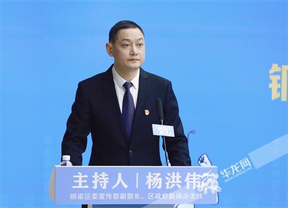 铜梁区委宣传部副部长、区政府新闻办主任杨洪伟主持发布活动。华龙网-新重庆客户端记者 雷其霖 摄