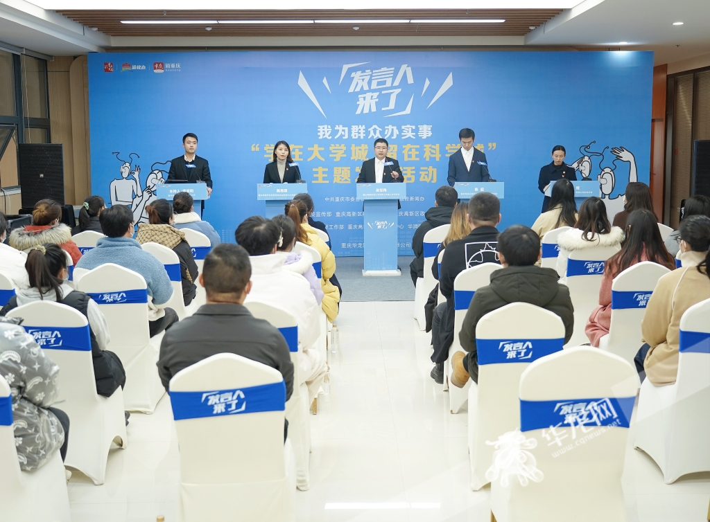 1月6日下午,“发言人来了——我为群众办实事”走进重庆高新区,来自重庆高新区政务服务和社会事务中心、党工委党群工作部、创新服务中心和华润微电子(重庆)有限公司的四位发言人围绕“学在大学城 留在科学城”主题,号召广大青年学子“学在大学城 留在科学城”,并就其关心的就业创业问题进行现场答疑,进一步成就这场“双向奔赴”的新时代之约。