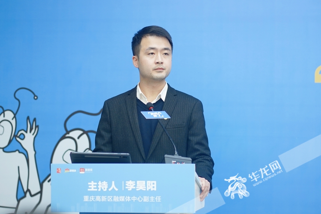 重庆高新区融媒体中心副主任李昊阳主持新闻发布活动。华龙网-新重庆客户端记者 李佳妮 摄