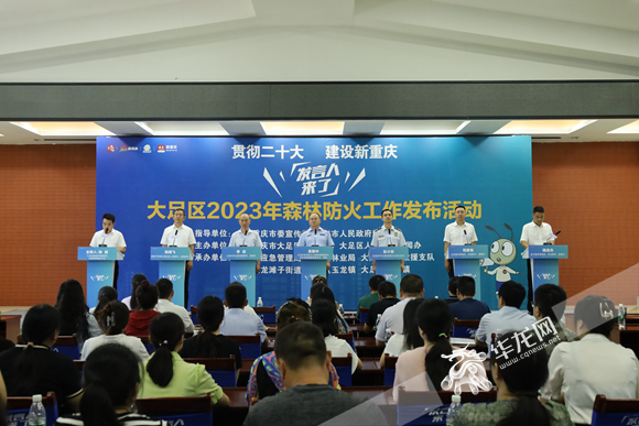 骄阳似火的七月即将来临,而巴岳山脚下的重庆市大足区也正紧锣密鼓地筹划,将森林火灾防范于未“燃”。6月27日,重庆市大足区举行“发言人来了”——大足区2023年森林防火工作发布活动,来自大足区应急管理局、林业局、双桥经开区消防救援大队、龙滩子街道、玉龙镇、拾万镇的6位发言人一齐“上阵”,为现场市民摆一摆大足区2023年化解森林火灾风险的做法和经验。