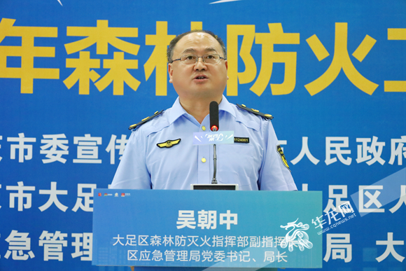大足区森林防灭火指挥部副指挥长,大足区应急管理局党委书记、局长吴朝中。 华龙网-新重庆客户端记者 刘岱松 摄