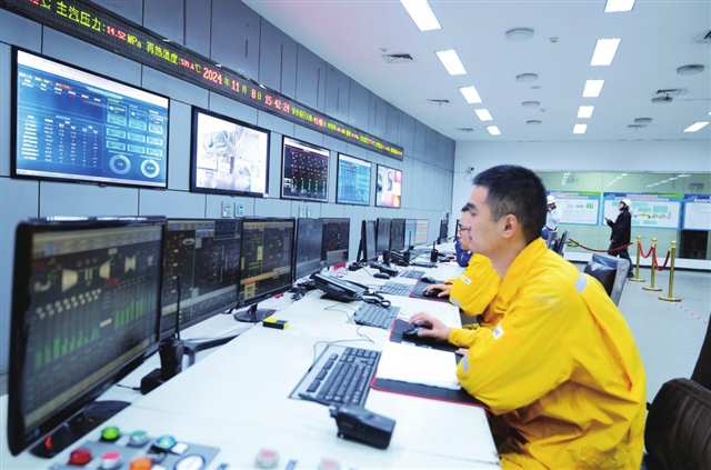 在重庆旗能电铝有限公司发电运行车间,集控室工人精心监盘 摄/杨奇