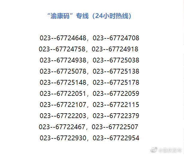 @重庆发布 消息,市民在申请和使用“渝康码”的过程中,如果遇到了问题该怎么办?对“渝康码”颜色有异议该怎么申诉咨询?3月29日,重庆市大数据应用发展管理局发布消息,重庆开通24小时服务热线电话,确保市民在使用过程中有关的问题,得到及时解决。