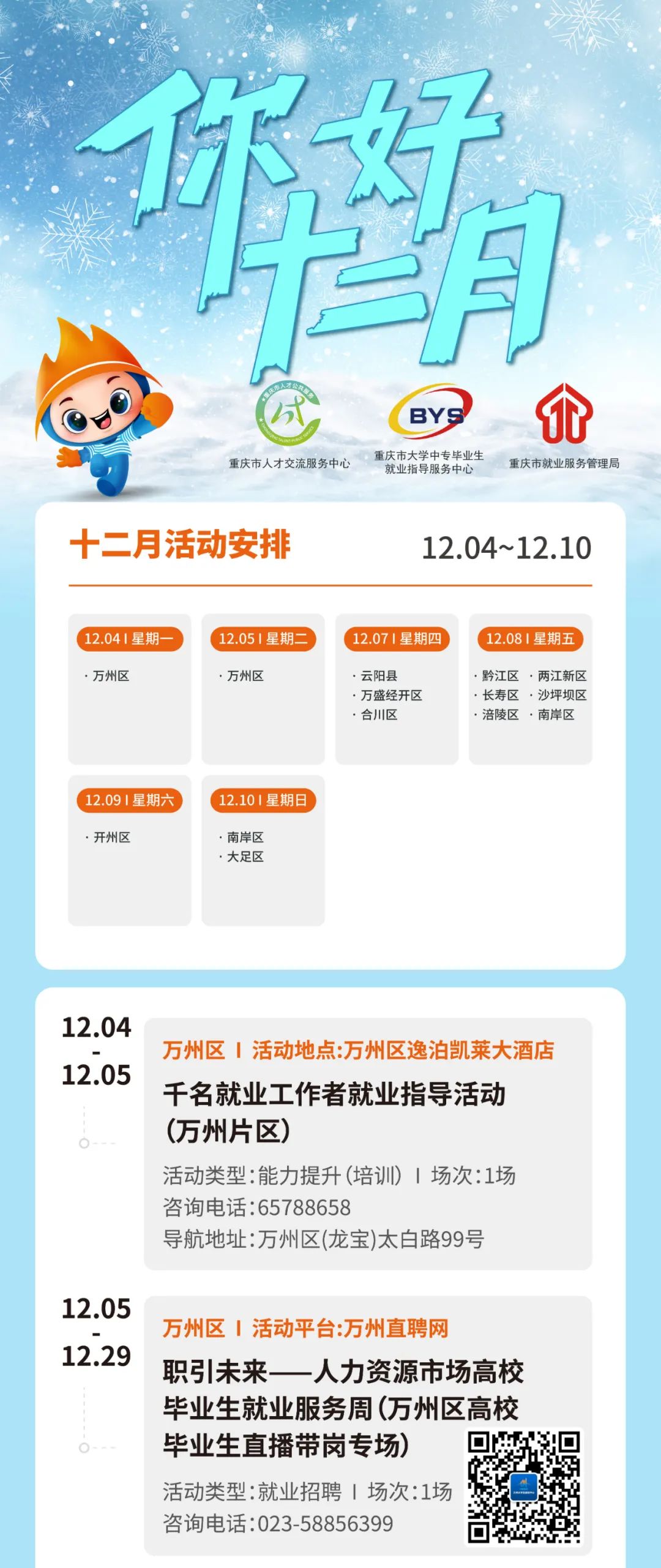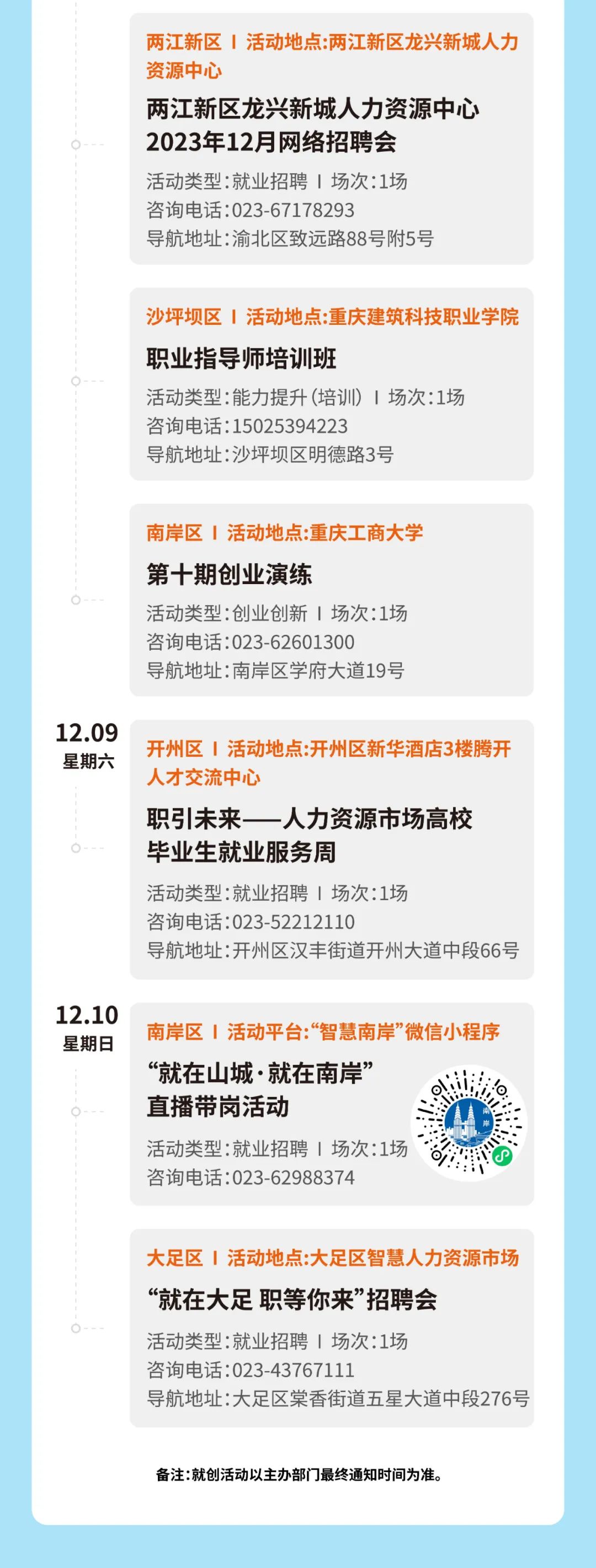 本周,全市共14场大学生就业创业活动。其中,包括千名就业工作者就业指导活动、职业指导师培训班、高校毕业生专场招聘会等活动,赶紧收藏参与吧!