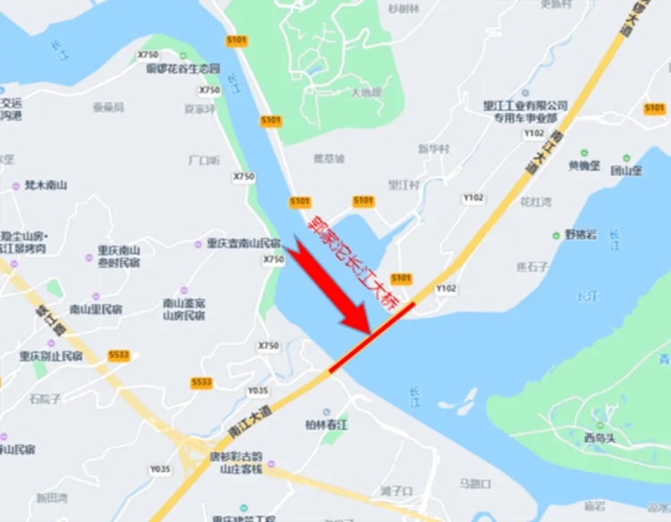 郭家沱长江大桥段双向八车道全封闭。