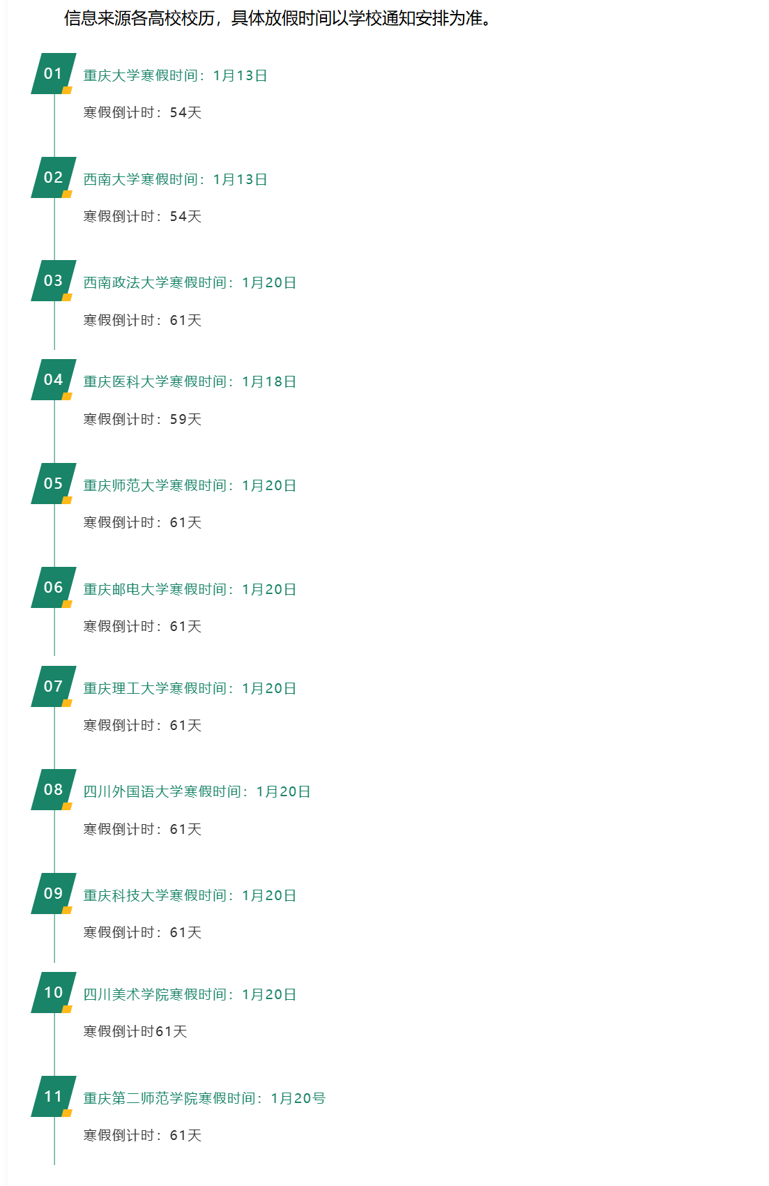 除了中小学,2025年重庆部分大学寒假放假时间也已经发布。