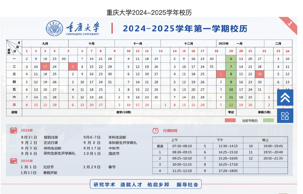 ▲重庆大学校历。网络截图