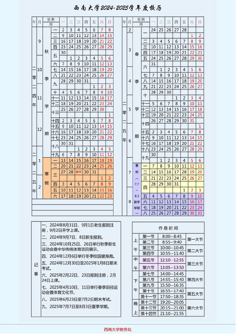 ▲西南大学校历。网络截图