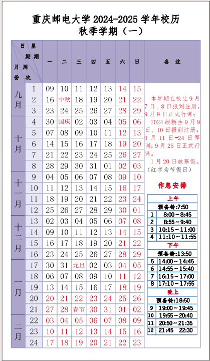▲重庆邮电大学校历。网络截图
