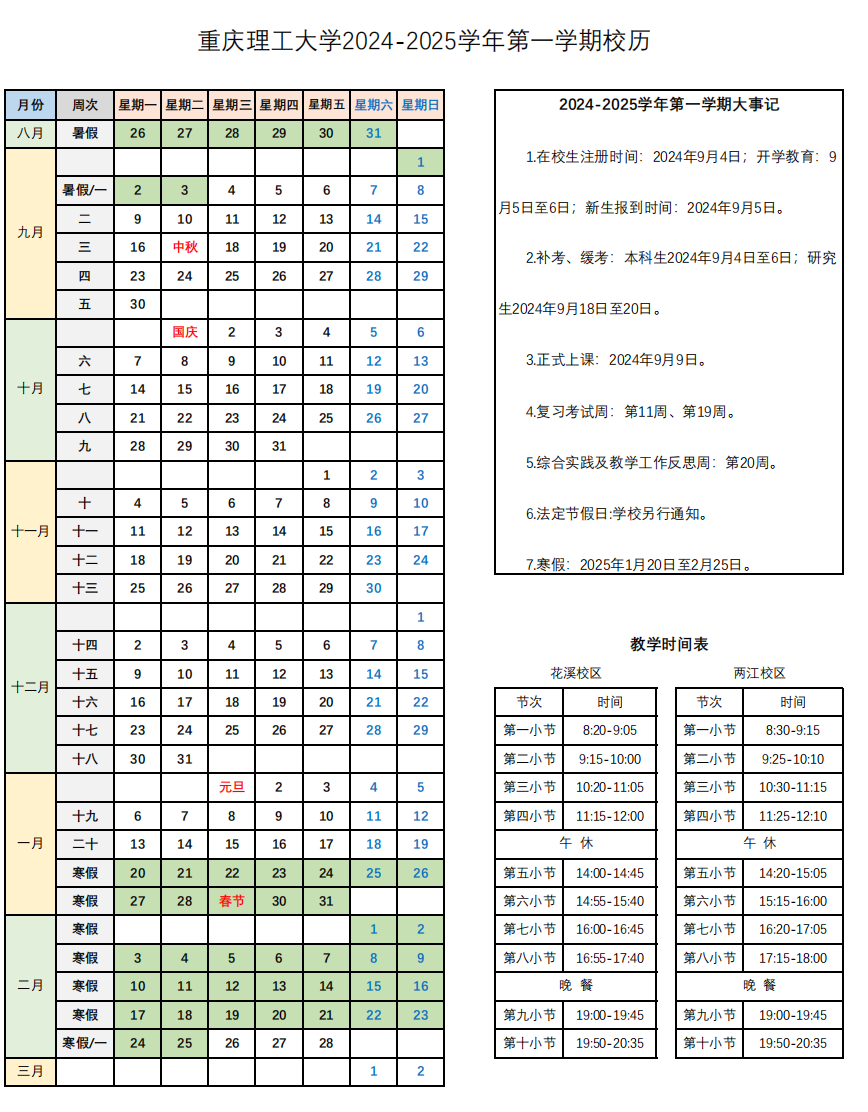 ▲重庆理工大学校历。网络截图