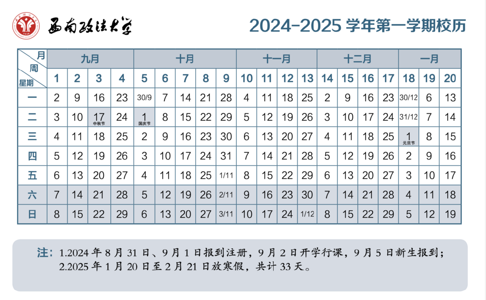 ▲西南政法大学校历。网络截图