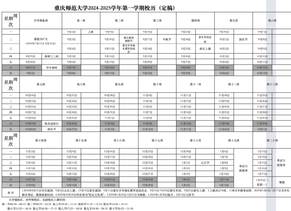 ▲重庆师范大学校历。网络截图