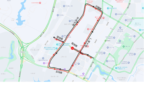 (1)莲池路↔广福大道↔玉马路↔天文大道↔莲池路,绕行距离约2.1公里;