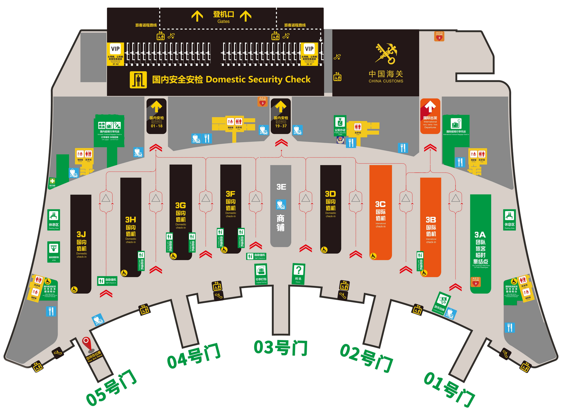 12月23日起,华夏航空、东海航空、湖南航空将调整至3J值机岛办理乘机手续。四川航空将在3D值机岛一侧办理乘机手续。