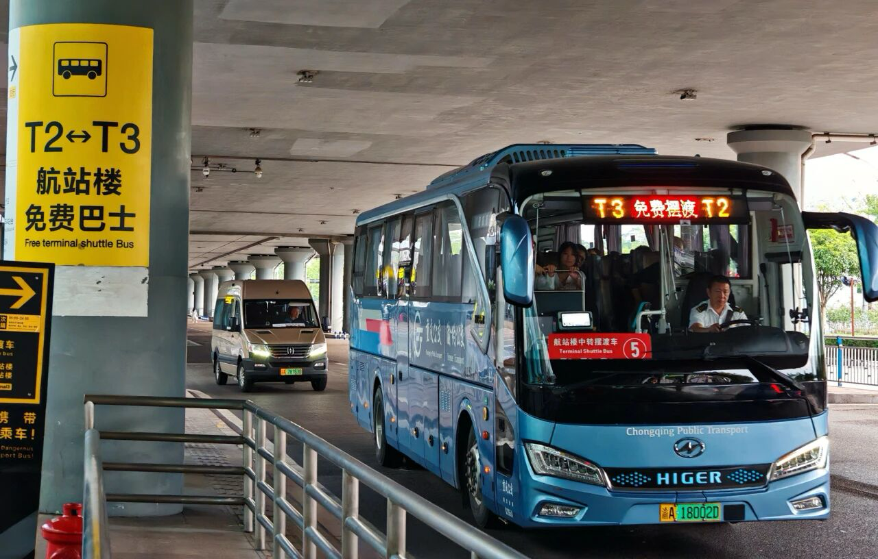 机场免费巴士。重庆江北国际机场供图