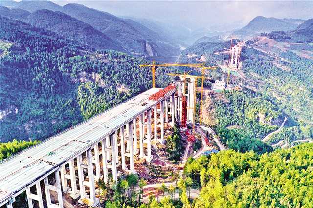 图为2月13日拍摄的建设中的渝湘复线高速双堡特大桥。