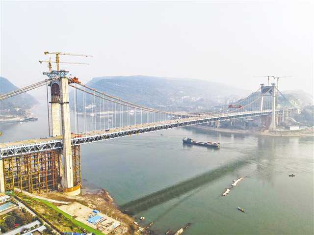3月15日上午,随着最后一块钢桁梁的成功吊装,郭家沱长江大桥顺利合龙,将进入桥面及附属设施施工阶段,计划年内建成。