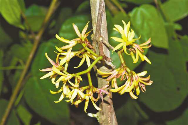 毛弓果藤为夹竹桃科弓果藤属多年生藤状灌木,生长于保护区内的林缘灌丛。