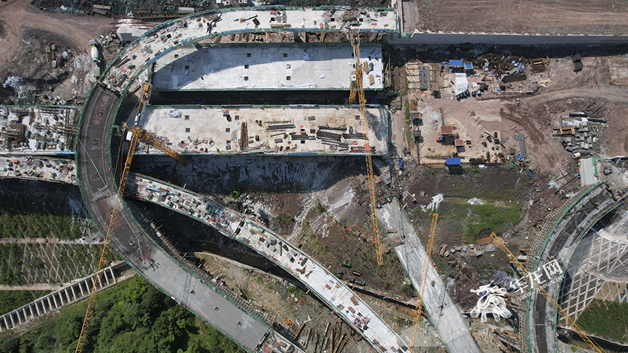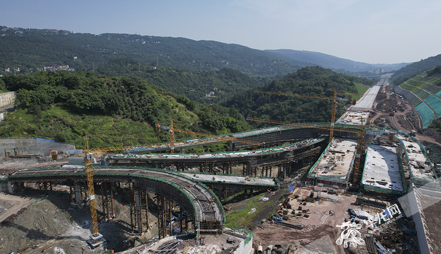 位于重庆南岸茶园片区的接线立交桥梁结构全部施工完成。华龙网-新重庆客户端 首席记者 李文科 摄