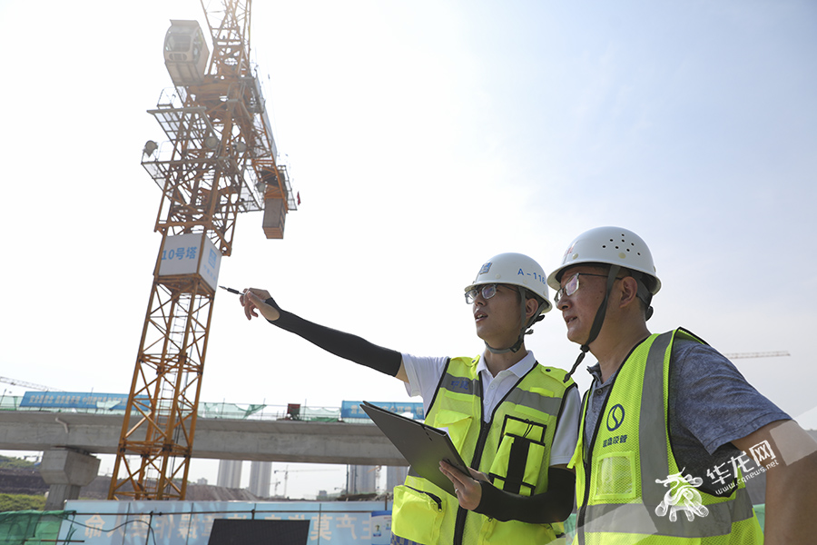 工程师在接线立交施工现场查看进度。华龙网-新重庆客户端 首席记者 李文科 摄