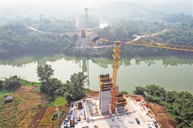 记者在綦江河特大桥施工现场看到,两个主墩已经拔地而起,施工人员正在20多米的高空绑钢筋、扎模板。“大桥60多名施工人员正在加快建设,力争年内完成右幅封顶、大桥桩基施工。”重庆渝赤叙高速公路有限公司工程部长王运涛表示。