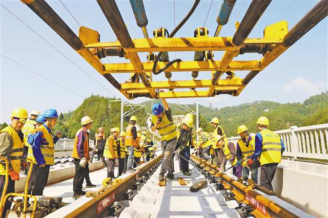 10月9日,渝厦高铁重庆至黔江段全面进入铺轨阶段。