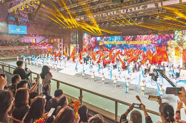 10月11日晚,重庆市第七届残疾人运动会开幕式在合川区体育中心体育馆举行。