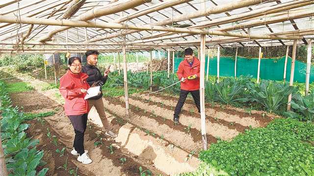 11月16日,西南大学专家在加德满都郊区测量大棚蔬菜实验地。黄红 摄/视觉重庆