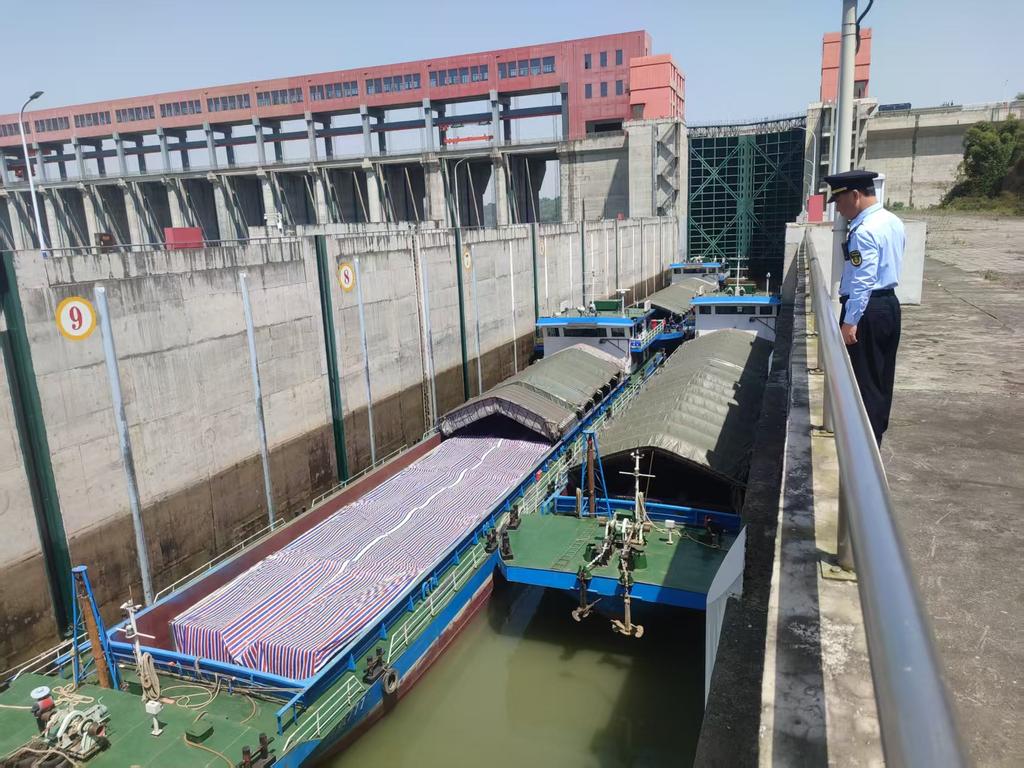 除了严格执法,执法队员还主动靠前、精准发力。在掌握各艘重载货船的吃水、载重情况后,协助船闸运行单位优化过闸排序,科学引导船舶有序候闸、依次进闸。同时与运行单位密切联动,及时调整调度方案,有效杜绝了船舶拥堵、滞留现象的发生。
