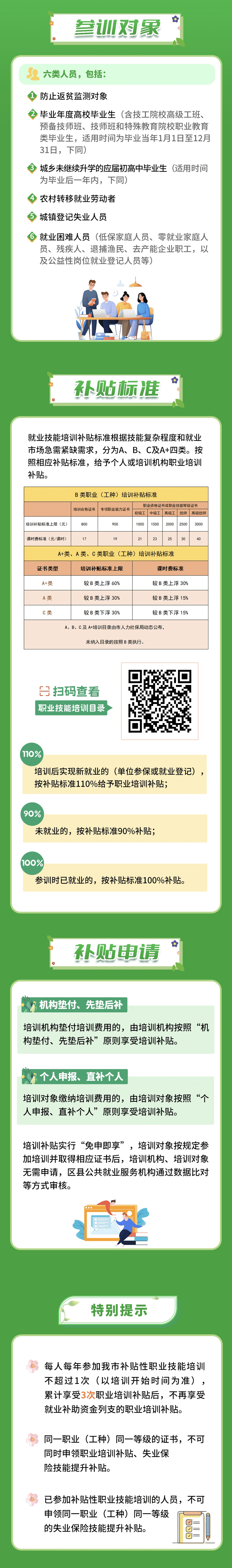 为提升职业技能培训针对性、有效性,强化职业培训赋能产业、促进就业导向,近日,市人力社保局对职业培训补贴政策进行了解读,参训对象包括六类人员,将按照相应补贴标准,给予个人或培训机构职业培训补贴,多种职业补贴可达3000元。