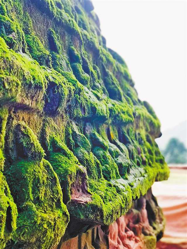 五号巨石周身雕刻的罗汉群像。(本栏图片均由记者赵迎昭摄)