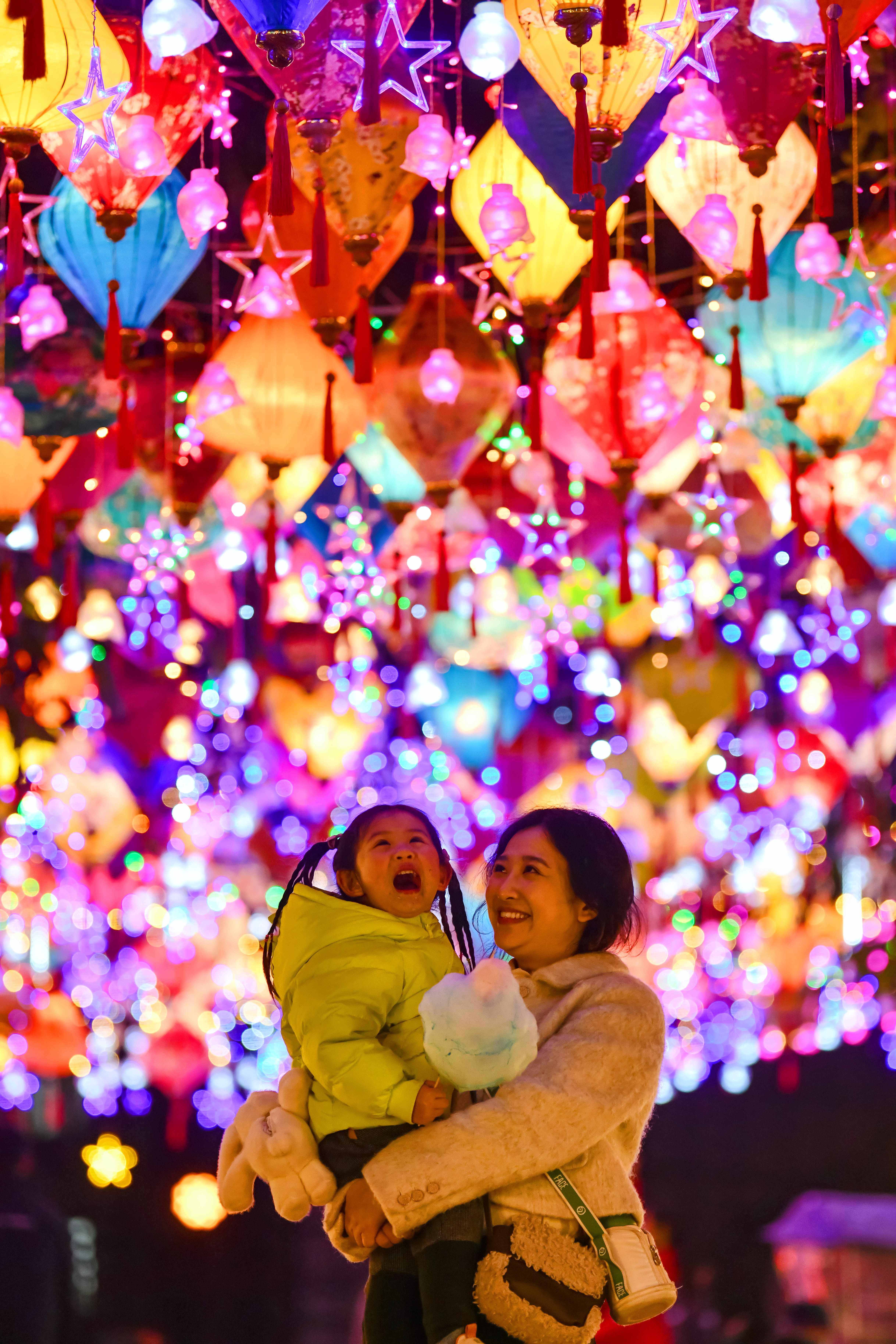 2022年2月14日,游客在綦江区东溪镇观赏花灯。元宵佳节将至,东溪镇花灯展吸引了众多市民赏灯游玩。通讯员 王京华 摄