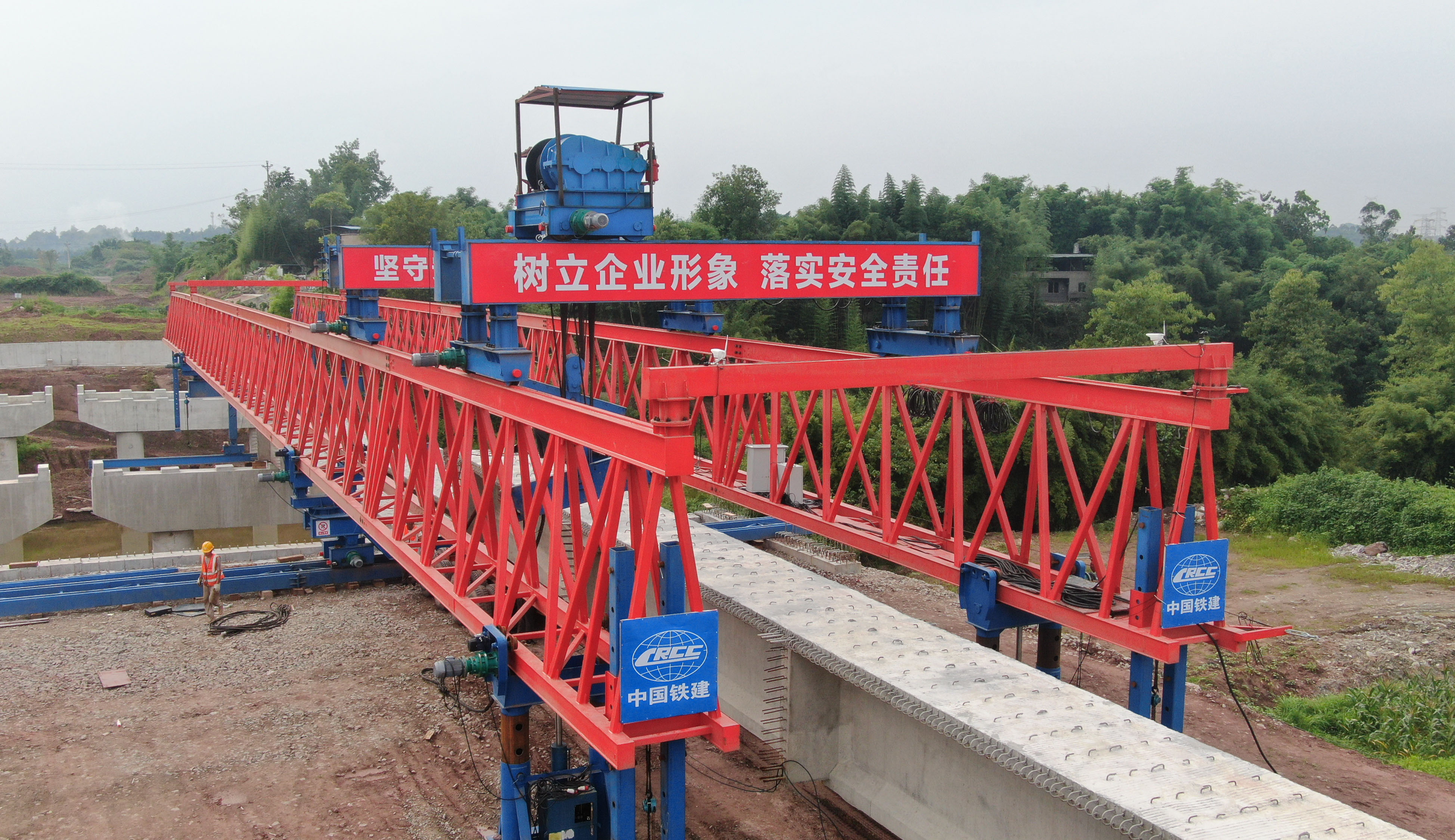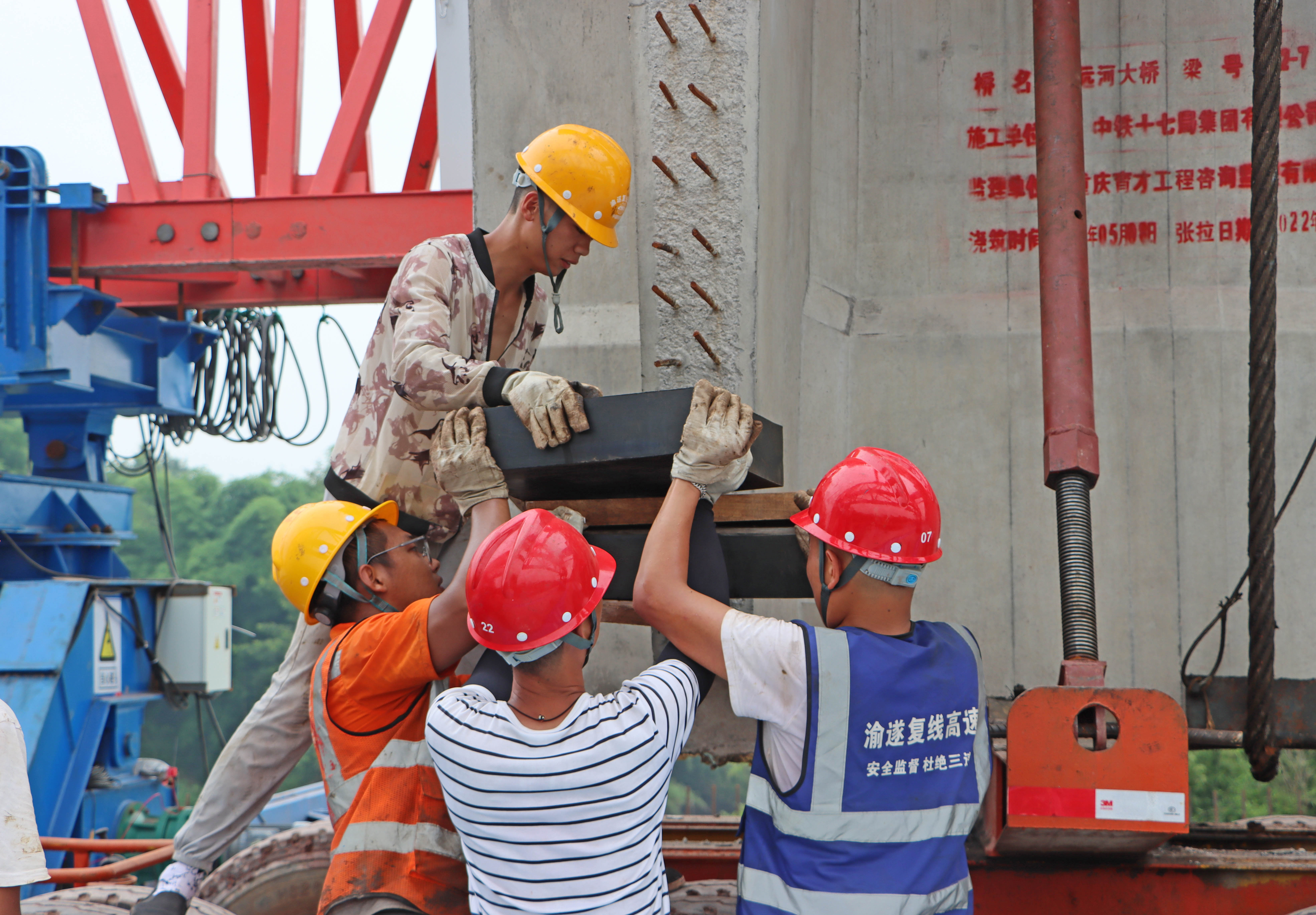 2022年6月20日,渝遂高速公路复线(北碚至铜梁段)淮远河大桥施工现场,全线首片长30米、重80吨的预制T型梁成功完成架设,标志着渝遂复线高速项目正式进入预制梁架设施工阶段。