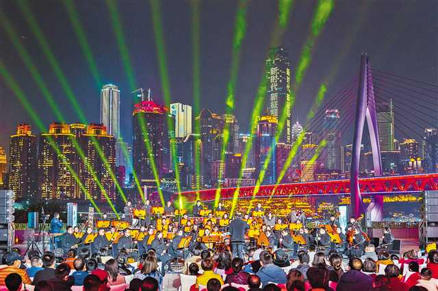 2月5日晚,重庆大剧院广场,一场主题为《春江花月夜》的江畔民乐音乐会上演,市民在一首首精彩的民乐中共度元宵佳节。