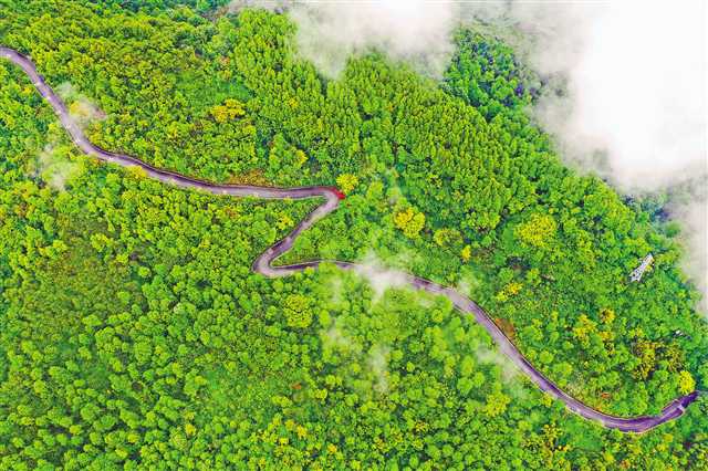 9月12日,万盛经开区万东镇方家山云雾缭绕、满山苍翠,乡村公路沿着山峦蜿蜒盘旋,好一幅乡村生态美景画卷。