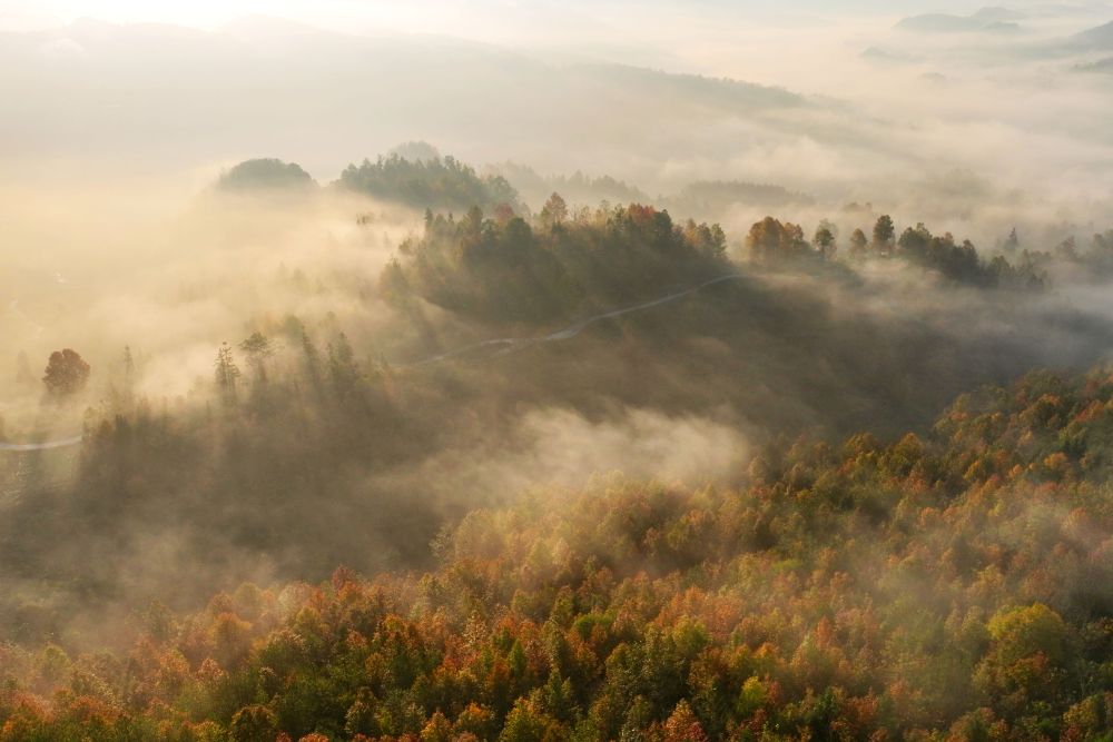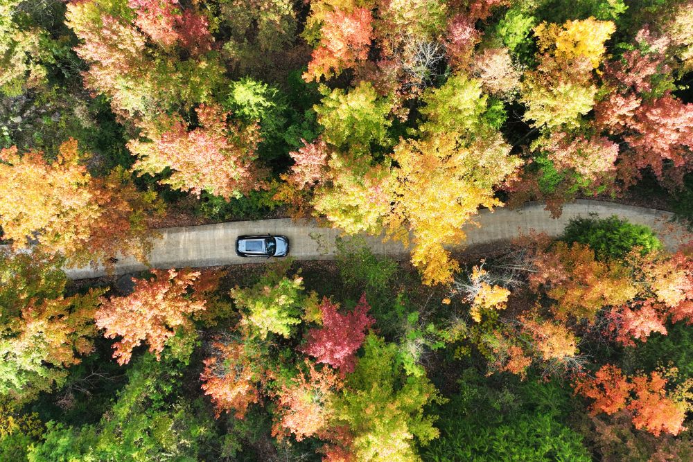 11月19日,酉阳县板桥乡境内,成片的枫叶彩林绚烂多彩。 特约摄影 陈碧生