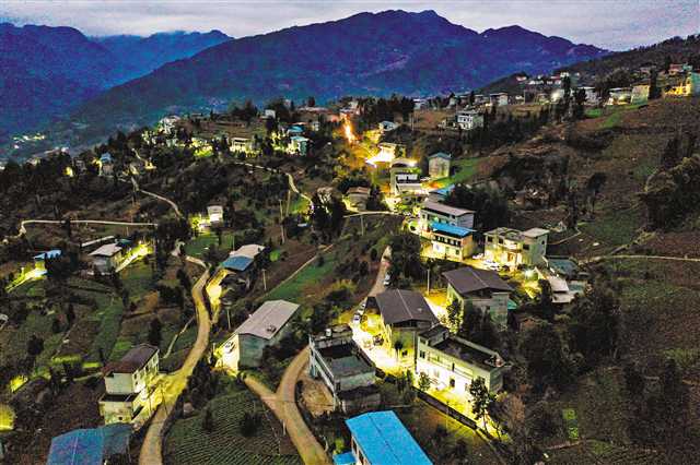 2月1日,夜幕降临,巫溪县蒲莲镇莲花村的一个个农家院坝,太阳能路灯照亮了山村的夜晚。
