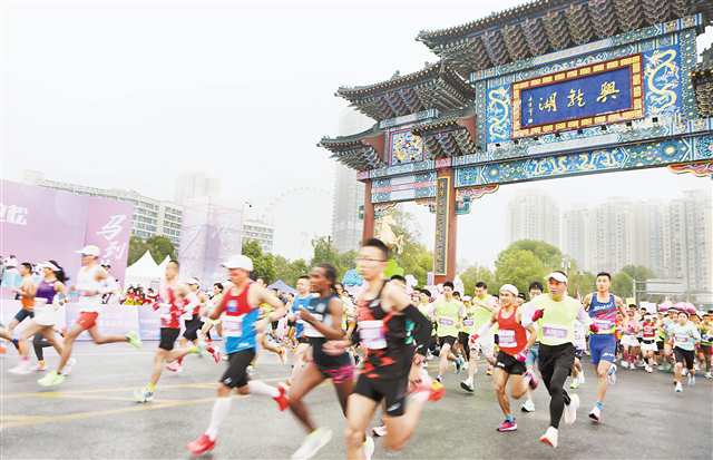 3月9日,永川兴龙湖,参赛选手在奔跑中享受运动的快乐。