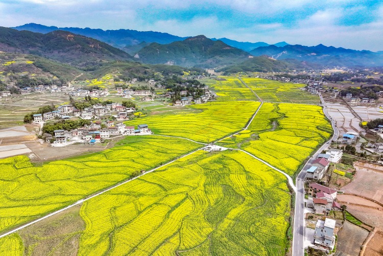 3月13日,梁平区回龙镇,数千亩油菜花竞相绽放,满目金黄,大地展开一场“满城尽带黄金甲”的春日盛宴。记者 郑宇 摄