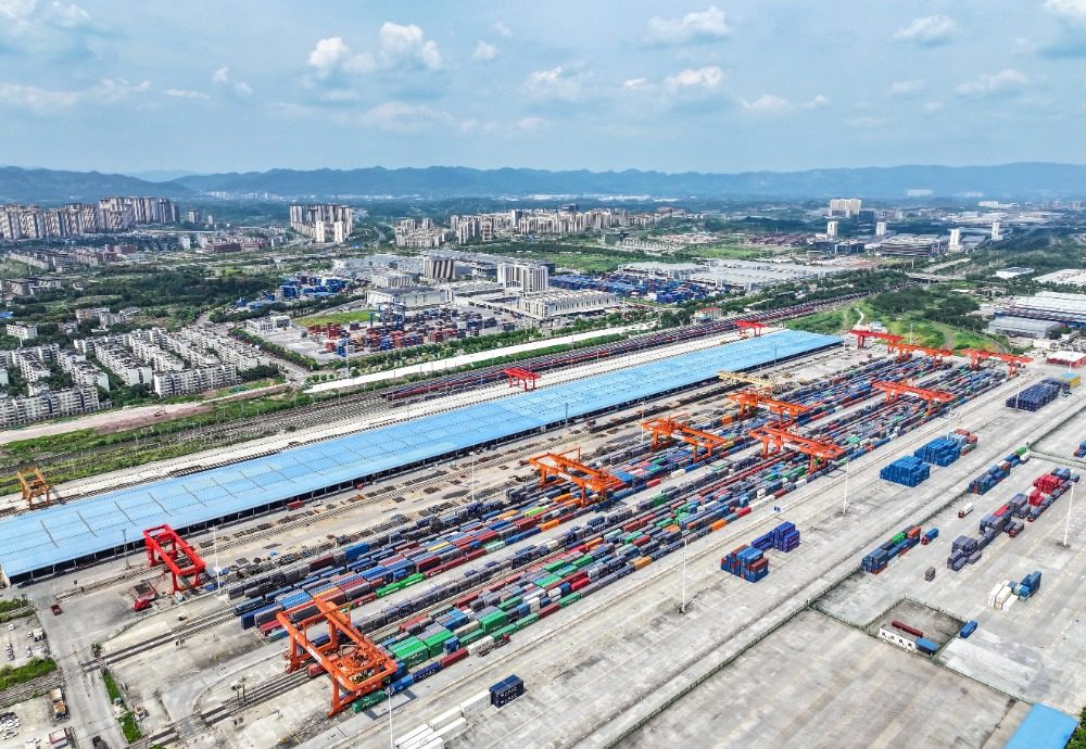 作为西部陆海新通道的重要策源地和始发站点,沙坪坝区积极通过创新多国协作机制、搭建标准化服务体系、培育跨境产业链等方式,将通道打造成为推动沿线地区国际合作的“大动脉”。截至目前,西部陆海新通道已经辐射国内18省区市162个站点、海外127国571个港口。