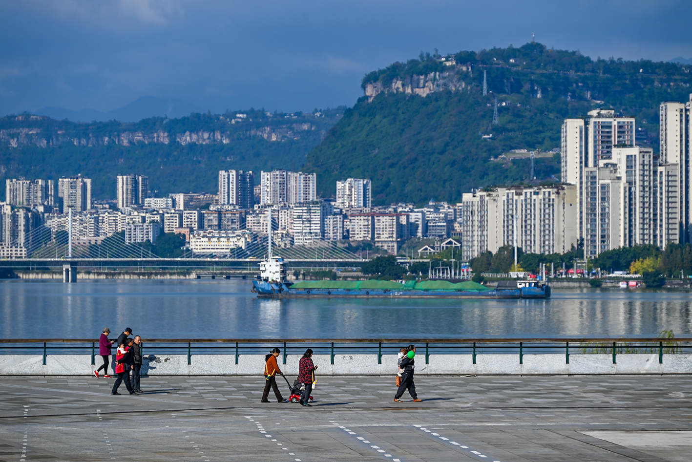 11月20日,万州区北滨大道二段,市民享受亲水生活。特约摄影 冉孟军