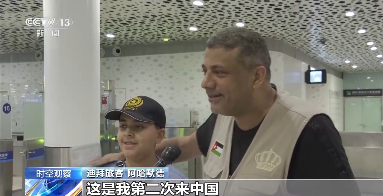 迪拜旅客 阿哈默德:这是我第二次来中国,我的儿子是第一次来。我有三天的工作,之后我和儿子去深圳、广州玩。