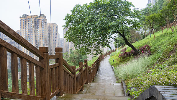 重庆市住房城乡建委消息,近日,位于重庆江北区的鸿恩步道已基本完工并面向市民开放,部分配套设施正在进行扫尾工作,预计6月底全面完工。
