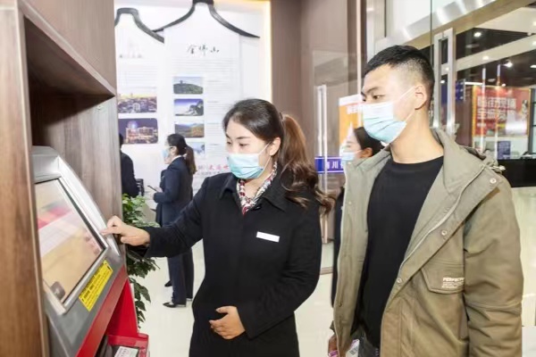 工作人员为市民打印登机牌。喻梵摄